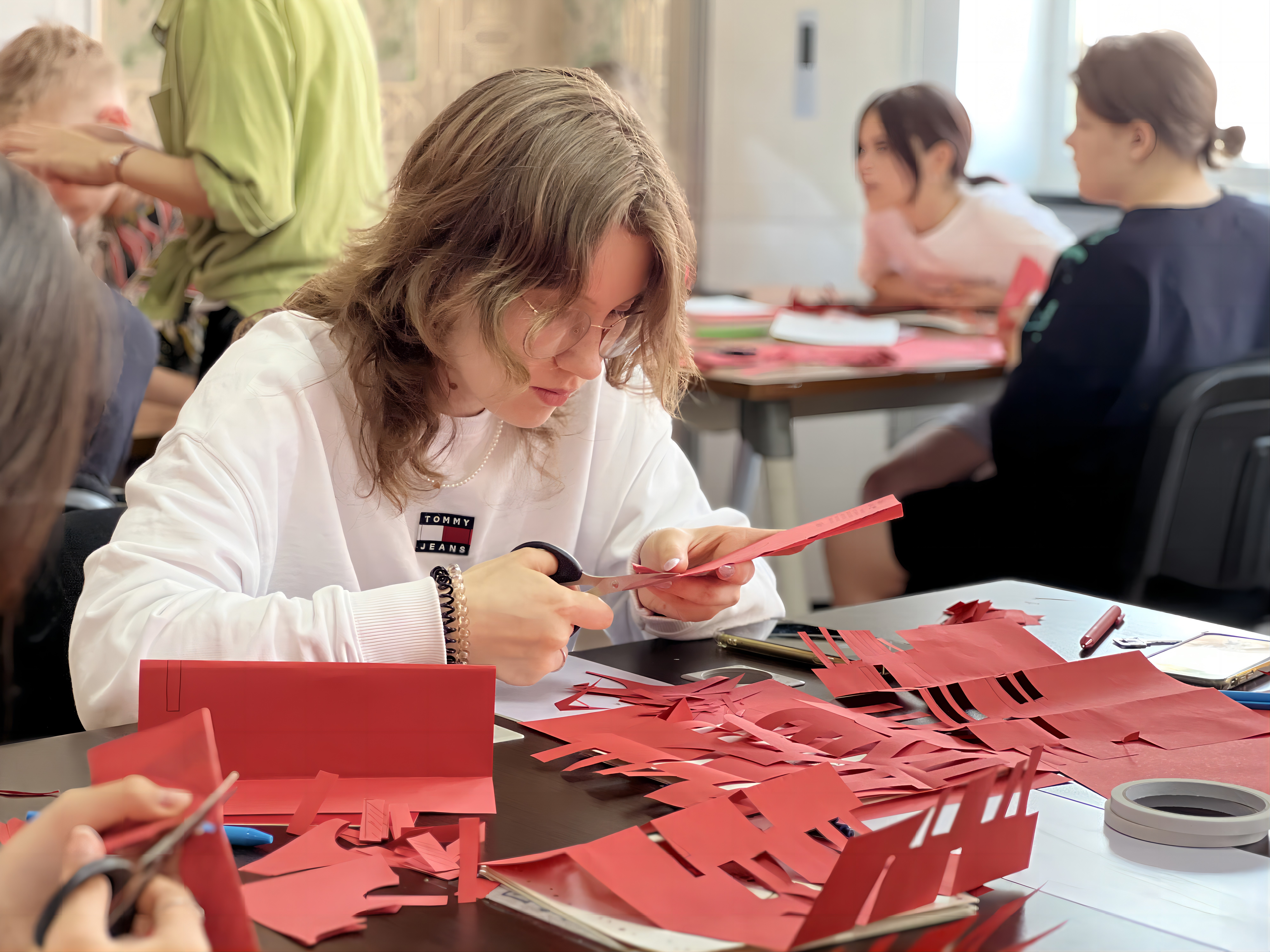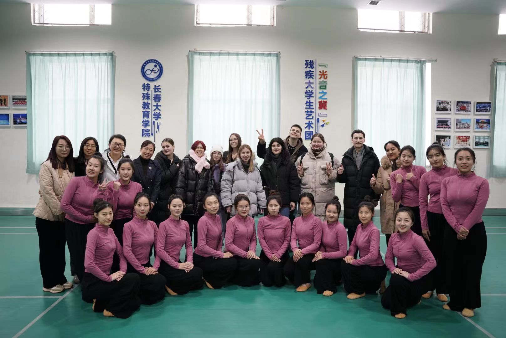 俄羅斯短期研學團學員們參觀了特殊教育學院的纖維、蛋雕工作室和醫教康設備,觀看了我校殘障大學生藝術團舞蹈表演《冬之戀》等節目,為我校殘障大學生自強不息的勵志精神感動。