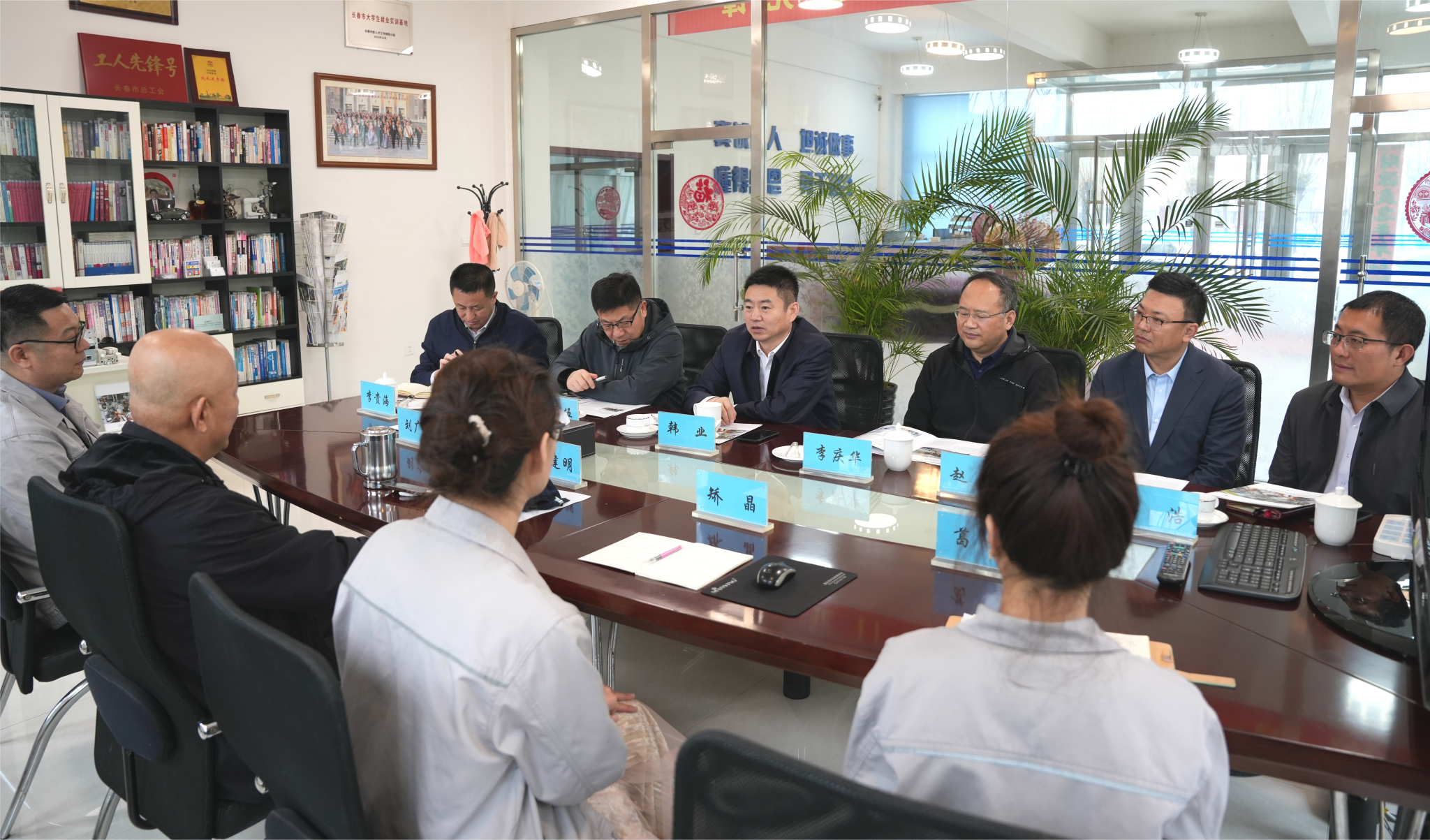 現場調研結束后,韓業與肖建明還就制造業企業發展愿景、民營企業發展人才短缺瓶頸破解、企業研發項目融入學校課程設計等方面問題進行了深入交流。長春大正博凱汽車設備有限公司總經理劉廣巖,學校教務處、就業創業指導中心、機械與車輛工程學院、電子信息工程學院、計算機科學技術學院相關負責人陪同調研。