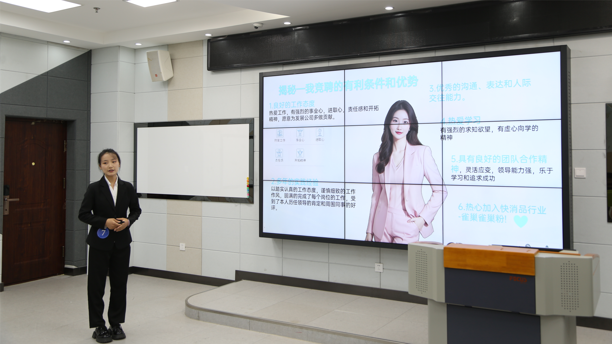 決賽分選手自我展示和評委現場提問兩個環節,在展示環節各參賽選手具體說明簡歷內容、設計思路、求職意向,詳實闡述個人經歷、獲獎情況、自身優勢以及對未來的職業規劃等。評委圍繞選手的簡歷設計、生涯規劃等問題進行提問和交流。